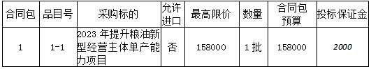項目名稱:2023年提升糧油新型經營主體單產能力項目 ??