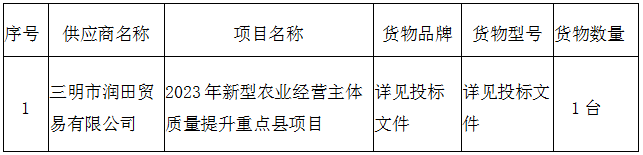 2023年新型農業經營主體質量提升重點縣項目 成交公告