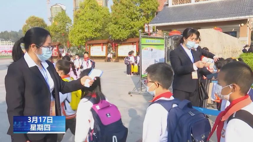 近日,在寧化第二實驗小學,根據學校安排,全校同學實行錯峰上學。大家戴好口罩,在校門口測量體溫后,有序進入校園。