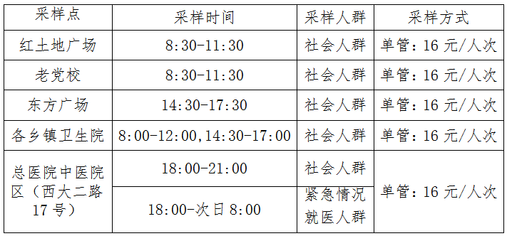 一、紅土地廣場采樣點和老黨校采樣點服務時間調整為上午8:30-11:30,下午暫停采樣。