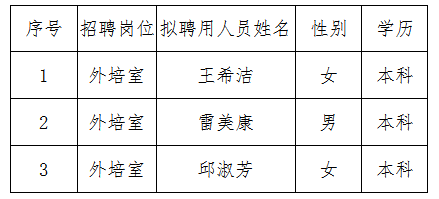 根據(jù)《寧化紅土地培訓(xùn)中心公開招聘企業(yè)工作人員方案》的有關(guān)規(guī)定,經(jīng)過報(bào)名、資格審查、面試、體檢和協(xié)審等程序,已確定3名擬聘用人員。現(xiàn)將擬聘用人員名單公示如下: