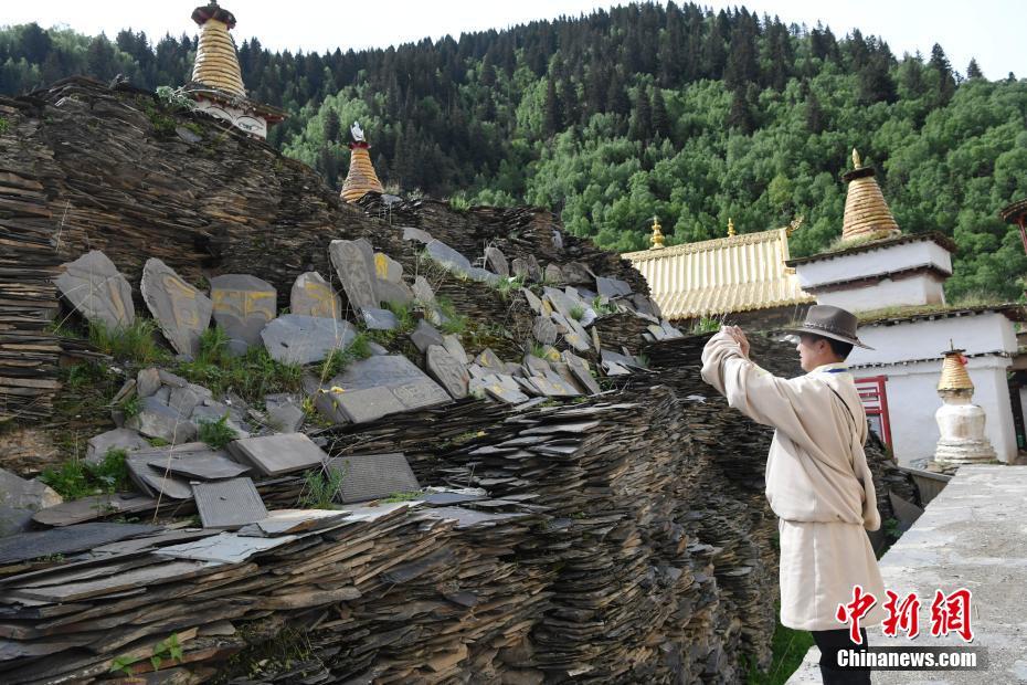 在四川阿壩州壤塘縣棒托寺內珍藏約50萬片明清時期鐫刻的大藏經《甘珠爾》和《丹珠爾》,大藏經左高9.7米,右高9.2米,長46米、左寬160米,右寬13米,占地598平方米,是目前全世界保存最完整、規模最宏大、內容最豐富的石刻大藏經孤品。據史料記載,由明末清初60余名石匠辛勤鐫刻9年而成。石刻藏文經書圖文并茂,筆法流暢,疏密有致,陰陽相背,滿版生輝。具有極高的文物和藝術研究價值。圖為堆積的石刻大藏經孤品。中新社記者 安源 攝