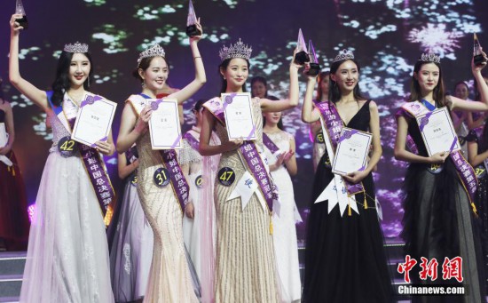 6月10日晚,2018國際旅游小姐大賽中國總決賽在江蘇無錫舉行,來自遼寧、上海、江蘇、福建、浙江、山東等地的53位佳麗參加大賽角逐。通過現場休閑裝、泳裝、晚裝以及知識問答等賽事環節的比賽,最后來自浙江賽區的馮家慧獲得冠軍、湖北賽區胡怡靈獲得亞軍,江蘇賽區姚嵐獲得季軍,福建賽區劉嘉怡、遼寧賽區鞏澳分別獲得大賽第4、5名。圖為頒獎儀式現場。 中新社記者 錢興強 攝