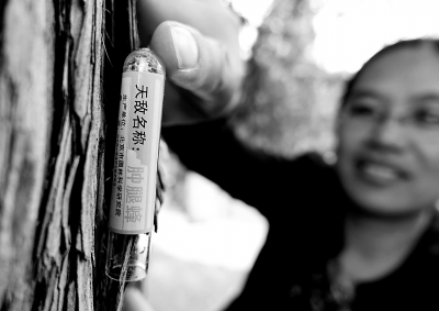 昨天,紫竹院公園投放了2萬只腫腿蜂、花絨寄甲等害蟲天敵,以“以蟲治蟲”生物防治技術保護古樹。本報記者 吳鏑攝