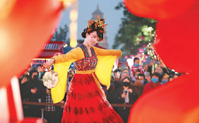 “不倒翁演出本身是個行為藝術。近距離的互動,能讓觀眾感受到大唐之美,有一種穿越大唐的感覺。”“不倒翁小姐姐”的扮演者馮佳晨介紹說,不止她個人的演出,整個大唐不夜城都在嘗試把唐文化與現代潮流結合,讓歷史悠久的文化以現代的方式呈現出來,以吸引更多年輕人。